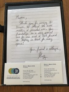 2:AAE(American Association of Endodontists 米国歯内療法学会)会長から私に学会への長年の貢献の為に記念品をいただきました。